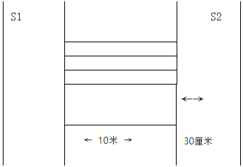 場地器材:10米長的直線跑道若干,在跑道的兩端線(S1和S2)外30厘米處各劃一條線(圖1)。木塊(5厘米×10厘米)每道3塊,其中2塊放在S2線外的橫線上,一塊放在S1線外的橫線上。秒表若干塊,使用前應進行校正。