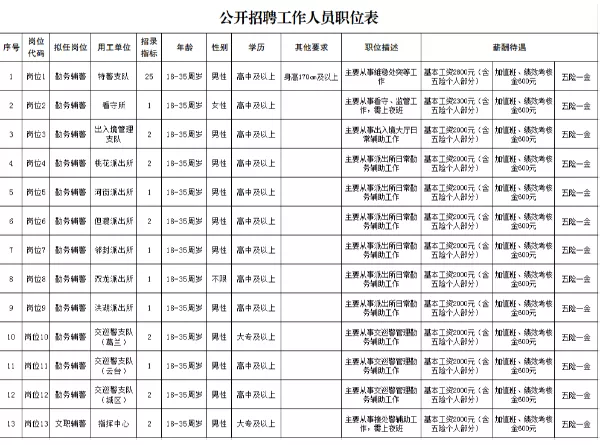 3.退伍軍人、公安院校畢業(yè)生及擁有輔警工作經(jīng)歷者優(yōu)先。