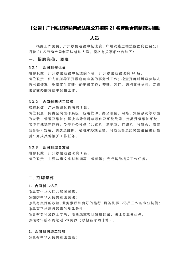 2021年廣州鐵路運(yùn)輸兩級(jí)法院公開(kāi)招聘21名勞動(dòng)合同制司法輔助人員公告