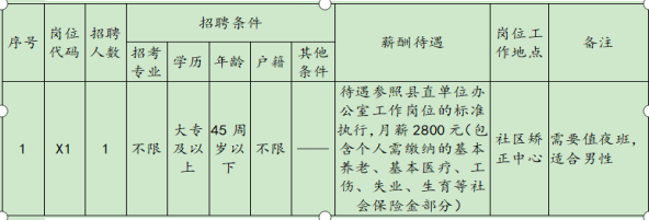 (一)本次招聘1名輔助人員由勞務(wù)公司與之簽訂勞動合同并以勞務(wù)派遣形式派遣至縣司法局從事司法行政輔助工作。崗位如下: