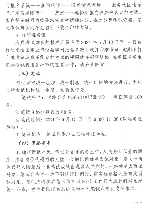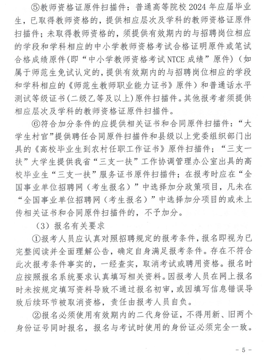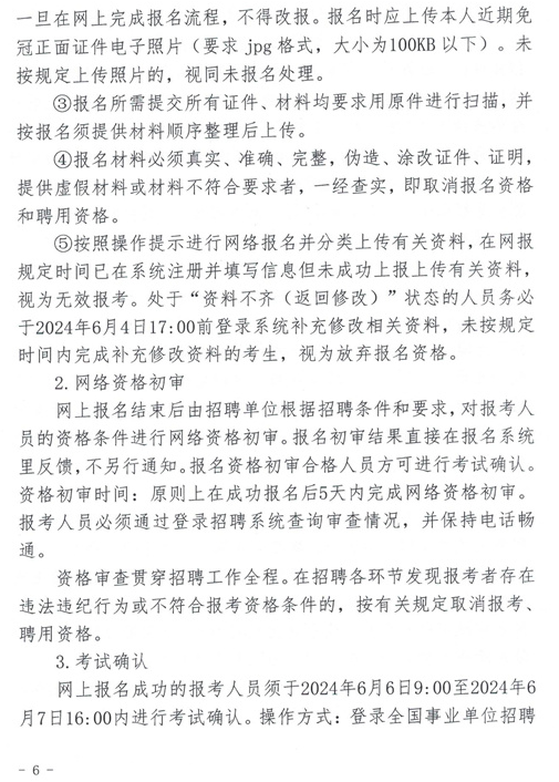 2.學(xué)歷要求:具有國(guó)家承認(rèn)學(xué)歷的大學(xué)專科畢業(yè)以上人員,具體詳見招聘崗位要求。普通高等學(xué)校2024年應(yīng)屆畢業(yè)生須承諾并于2024 年8月31日以前取得相應(yīng)畢業(yè)證書、學(xué)位證書,否則取消聘用資格;其他報(bào)考者須于報(bào)名首日(不含首日)以前取得相應(yīng)畢業(yè)證書、學(xué)位證書及招聘崗位要求的證書、證明材料。