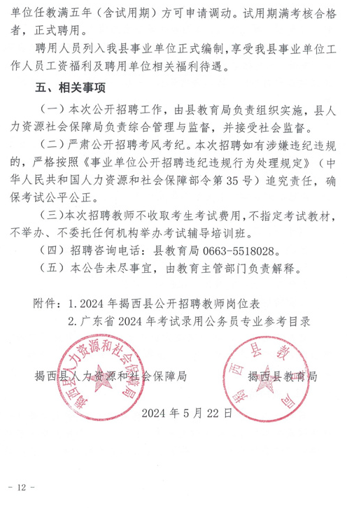 2024-05-22 15:57:40閱讀()揭陽(yáng)市揭西縣教育局為適應(yīng)我縣教育事業(yè)發(fā)展的需要,結(jié)合我縣教師編制情況,根據(jù)《事業(yè)單位人事管理?xiàng)l例》(國(guó)務(wù)院令第652號(hào))和《廣東省事業(yè)單位公開招聘人員辦法》(省人民政府令第301號(hào))的有關(guān)規(guī)定,按照“公開、平等、競(jìng)爭(zhēng)、擇優(yōu)”原則,經(jīng)縣人民政府同意,決定公開招聘教師48名。具體招聘公告如下: