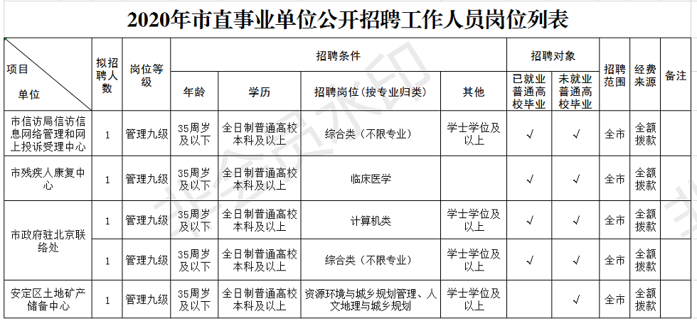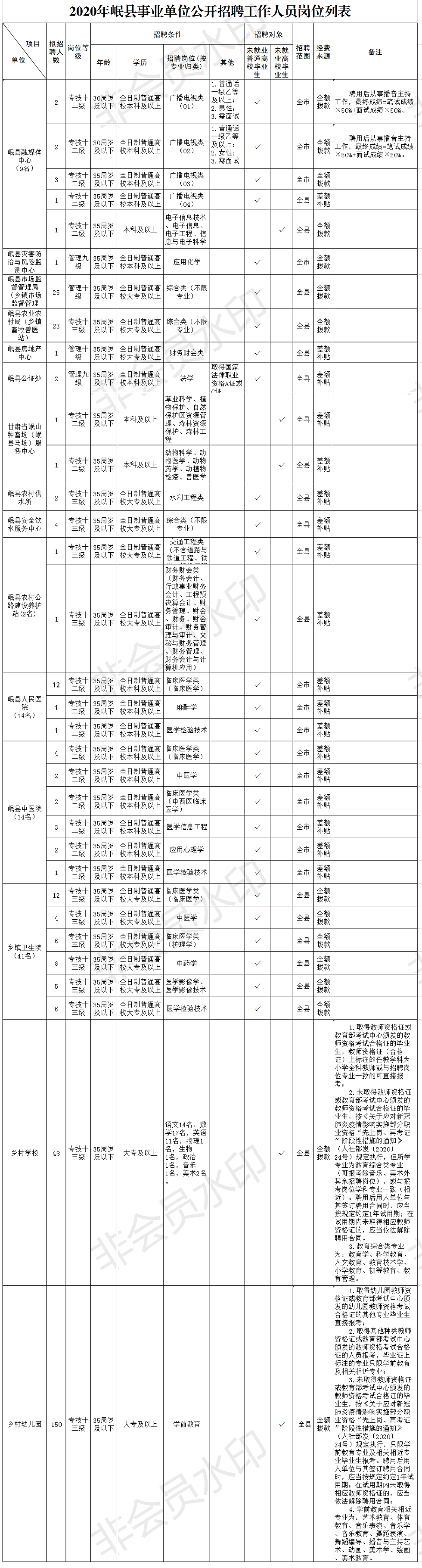 1.2020年定西市事業(yè)單位公開(kāi)招聘工作人員崗位列表;