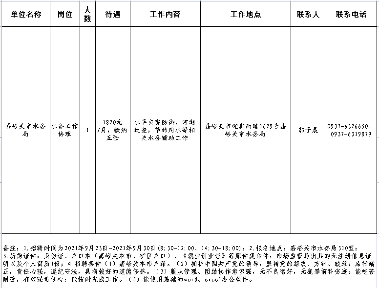 2021年嘉峪關(guān)市水務(wù)局公益性崗位招聘公告