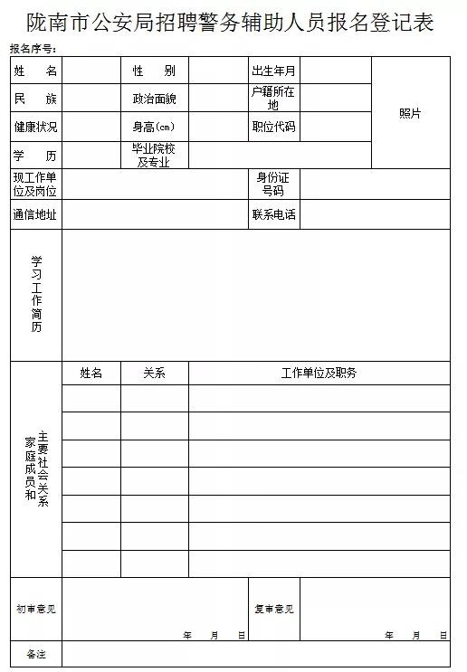 3、隴南市公安局招聘警務(wù)輔助人員報(bào)名登記表