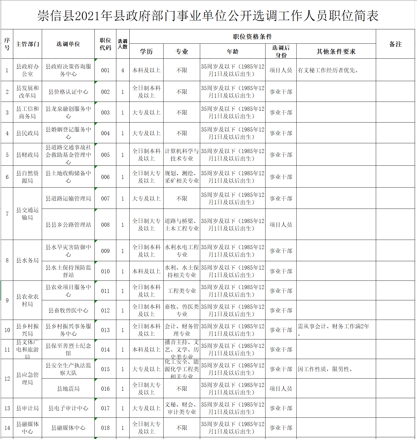 附件:1.崇信縣2021年縣政府部門事業(yè)單位公開選調工作人員職位簡表