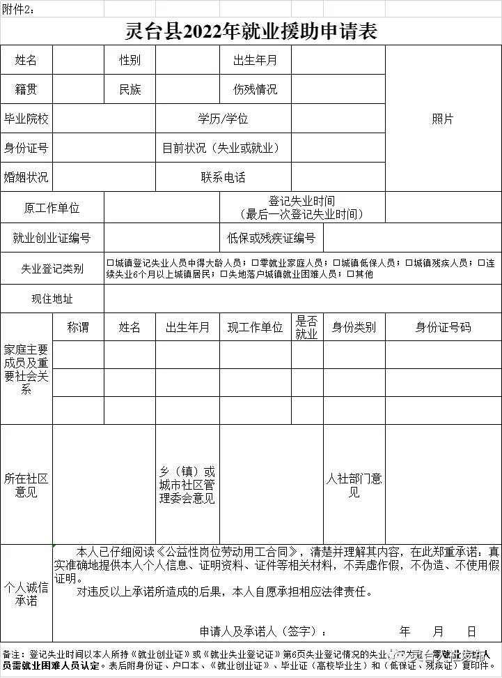 2.靈臺(tái)縣2022年就業(yè)援助申請(qǐng)表