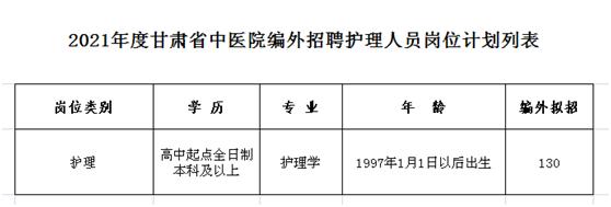6、具備崗位要求的其他條件(見(jiàn)下《2021年度甘肅省中醫(yī)院編外護(hù)理招聘人員崗位計(jì)劃列表》)。