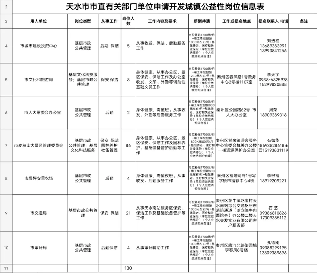 附件:1.天水市市直有關部門單位申請開發(fā)城鎮(zhèn)公益性崗位信息表。