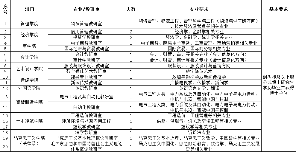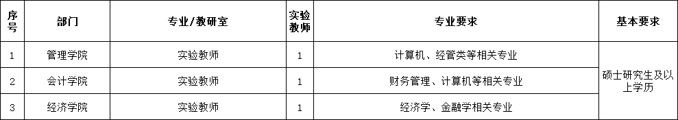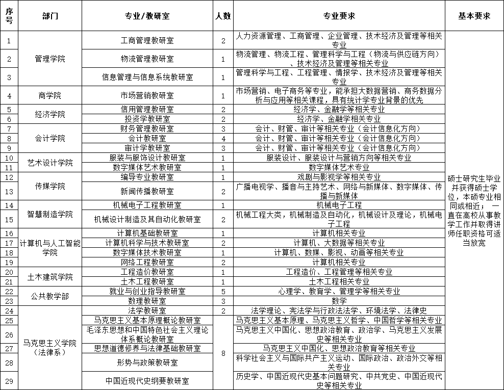 2.一般教師要求碩士研究生畢業(yè)并獲得碩士學(xué)位,本碩專業(yè)相同或相近;一直在高校從事教學(xué)工作并取得講師任職資格可適當(dāng)放寬;