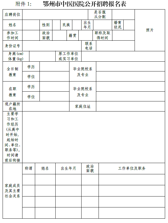 附件:1.鄂州市中醫(yī)醫(yī)院公開(kāi)招聘報(bào)名表