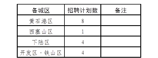 此次專項招聘擬面向黃石港區(qū)、西塞山區(qū)、下陸區(qū)、開發(fā)區(qū)·鐵山區(qū)所轄街道范圍內(nèi)的在崗城市社區(qū)黨組織書記公開招聘17名事業(yè)編制人員。具體情況如下: