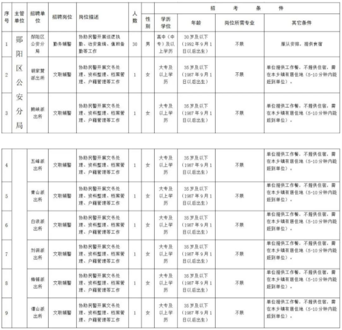 十堰市公安局鄖陽區(qū)分局招聘警務(wù)輔助人員職位表