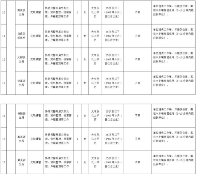 2.文職輔警16人,女性,協(xié)助民警開展文書處理、資料整理、檔案管理、戶籍管理等工作。