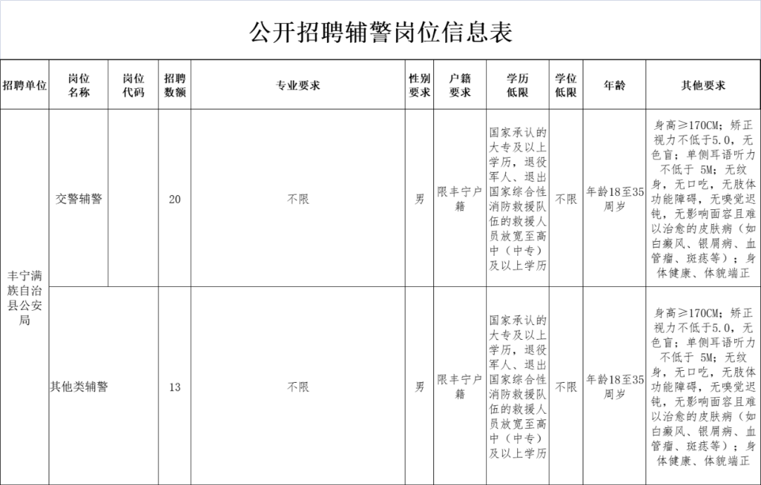 附件:1.豐寧滿族自治縣公安局公開招聘輔警崗位信息表