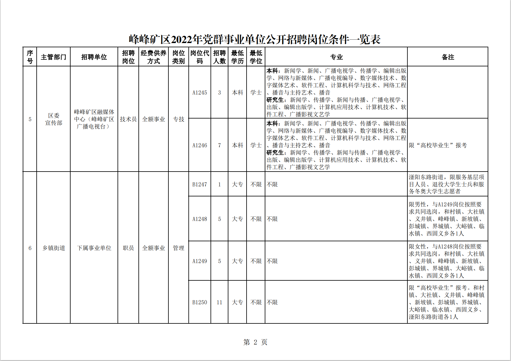 本次招聘崗位為峰峰礦區(qū)全額事業(yè)編制工作人員39名,其中限“高校畢業(yè)生”報考崗位20名,定向招聘崗位3名,分別為:
