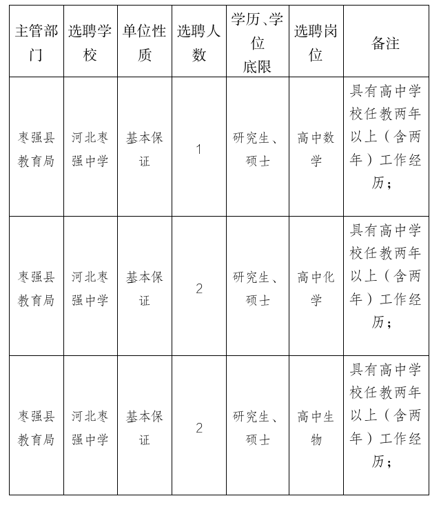為棗強(qiáng)中學(xué)選聘碩士研究生及以上學(xué)歷5人。