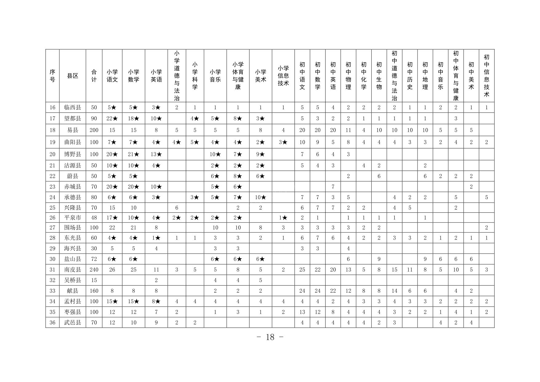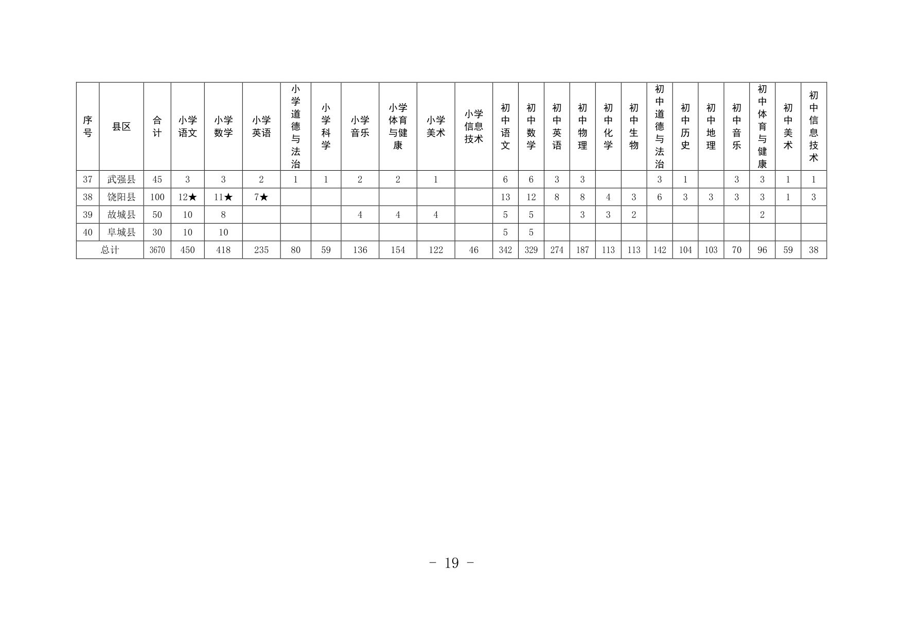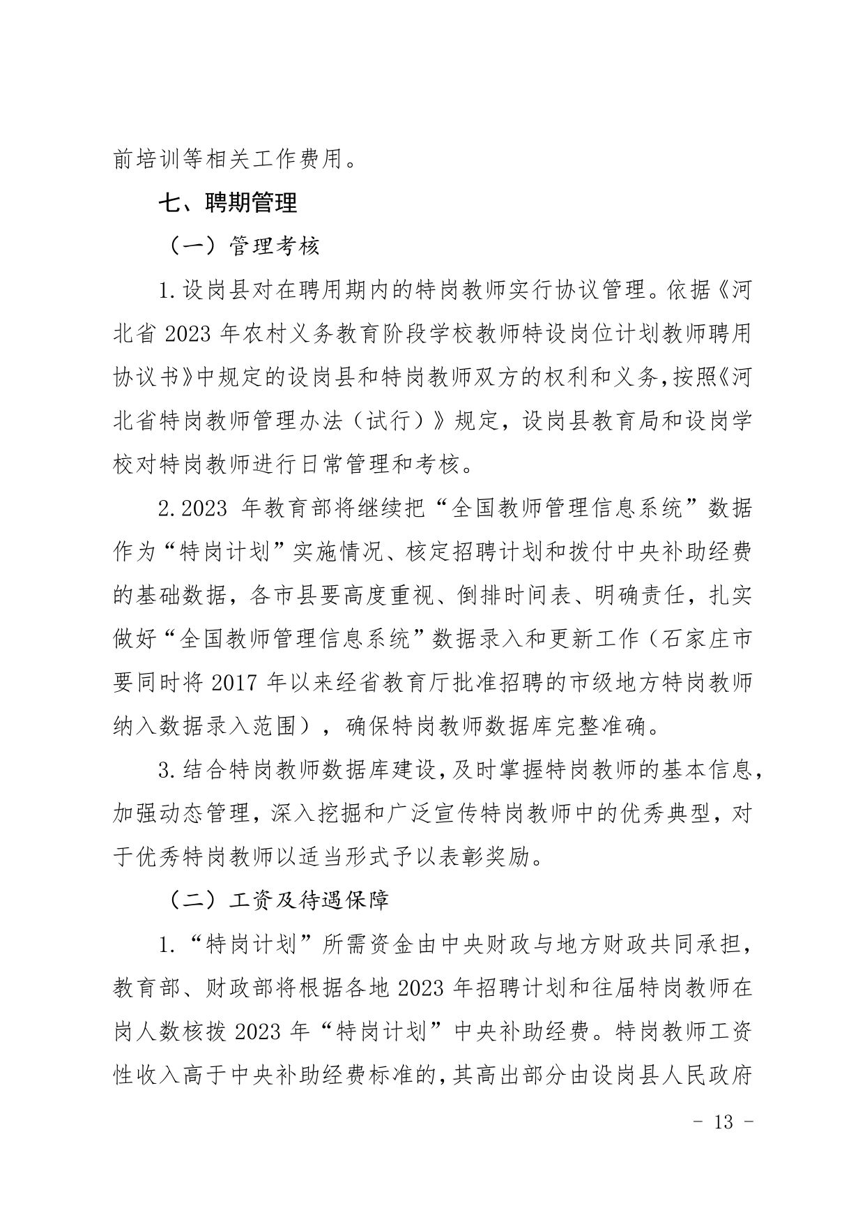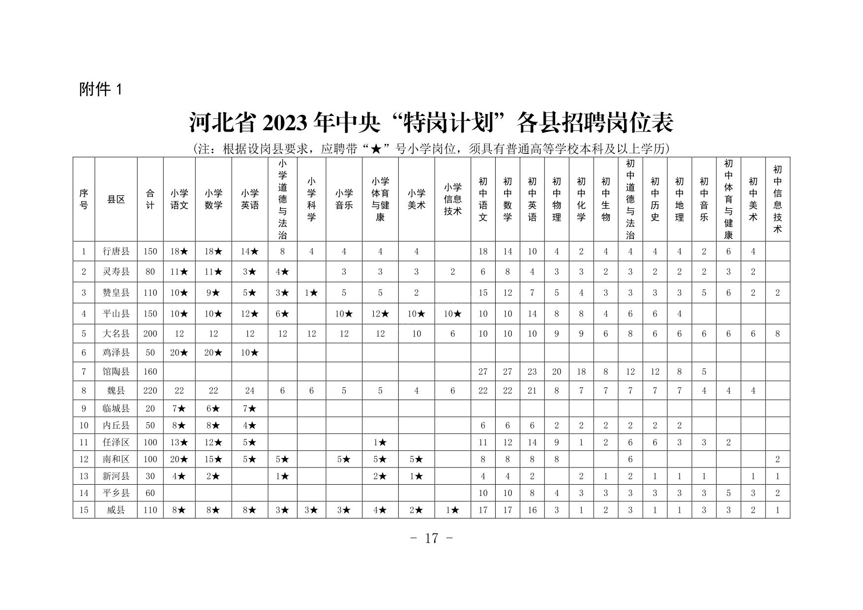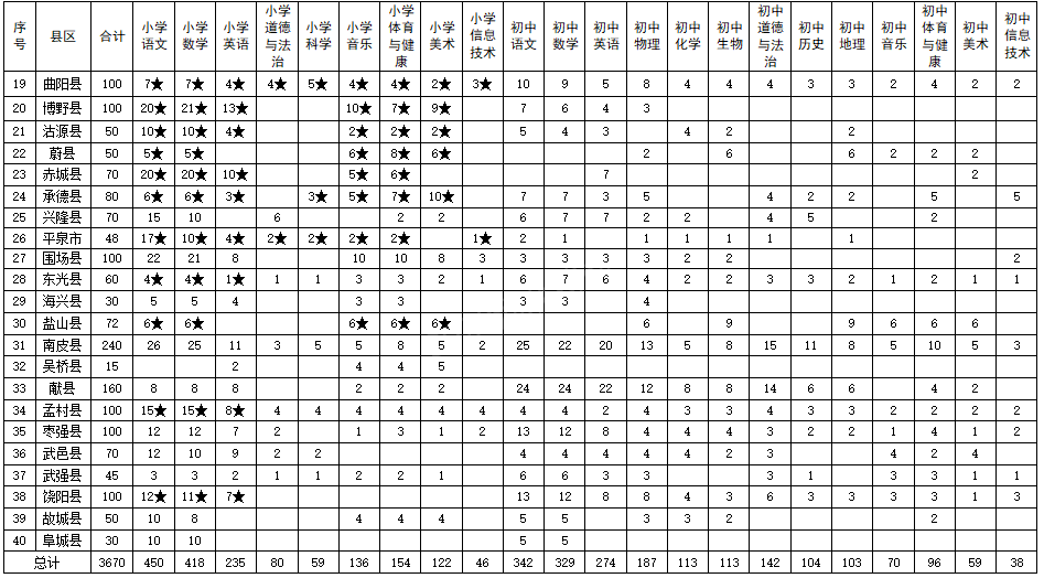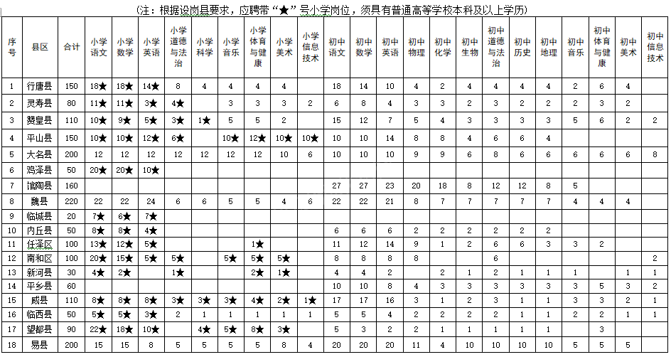 河北省2023年中央“特崗計劃”各縣招聘崗位表