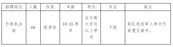 2023-08-11 19:42:30閱讀()中國雄安為扎實(shí)做好容東城市管理工作,充實(shí)綜合執(zhí)法隊(duì)伍力量,充分發(fā)揮綜合執(zhí)法在工作中的重要作用,根據(jù)容東綜合執(zhí)法隊(duì)伍目前崗位空缺情況和隊(duì)伍建設(shè)需要,特面向社會(huì)招聘容東片區(qū)綜合執(zhí)法輔助人員68名,現(xiàn)將有關(guān)事項(xiàng)公告如下: