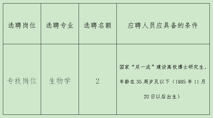 我院計劃此次選聘生物學博士研究生2名。