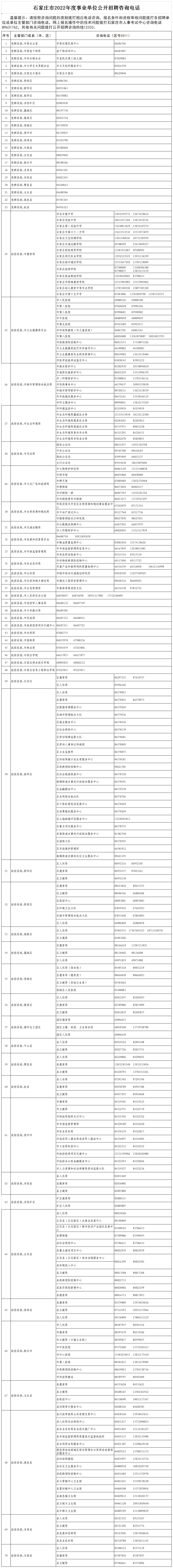 附件2:石家莊市2022年度事業(yè)單位公開招聘咨詢電話表