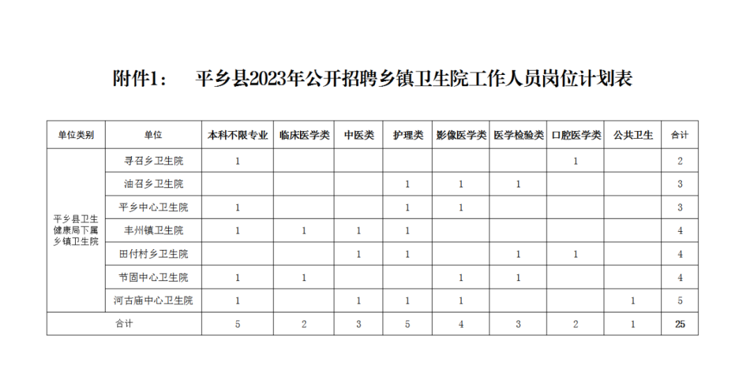 附件1:《平鄉(xiāng)縣2023年公開(kāi)招聘鄉(xiāng)鎮(zhèn)衛(wèi)生院工作人員崗位計(jì)劃表》