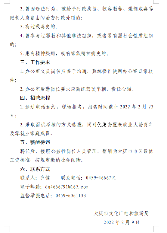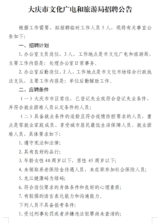 2022年大慶市文化廣電和旅游局招聘公告
