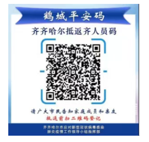 凡近期在市域外抵返齊齊哈爾人員,抵返前2天主動(dòng)報(bào)備,在進(jìn)入齊齊哈爾市市域前,要使用手機(jī)掃描“齊齊哈爾抵返齊人員碼”,點(diǎn)擊進(jìn)入程序后,按照注冊(cè)內(nèi)容要求,如實(shí)完整填寫相關(guān)信息。抵返后12小時(shí)內(nèi)主動(dòng)報(bào)告,24小時(shí)內(nèi)盡早主動(dòng)接受第一次核酸檢測(cè)并配合落實(shí)分類管控措施。