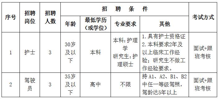 (6)護士崗位提供護士資格證書、執(zhí)業(yè)證書;駕駛員崗位提供駕駛證;