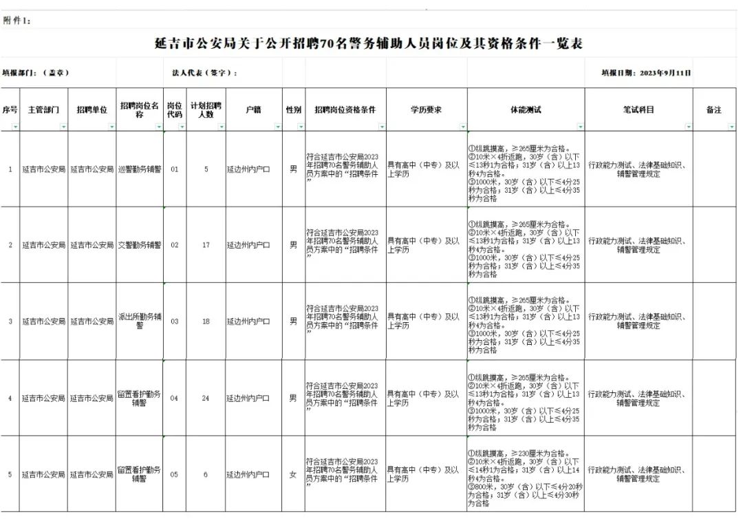 附件:延吉市公安局2023年招聘警務(wù)輔助人員崗位與資格條件一覽表