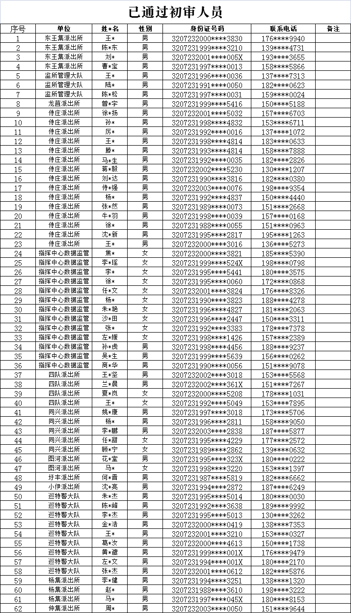 已參加灌云縣公安局2022年2月份招錄(因疫情影響,該次招錄未能正常開展)報(bào)名的人員此次無需再次報(bào)名,通過初審人員名單見附件。