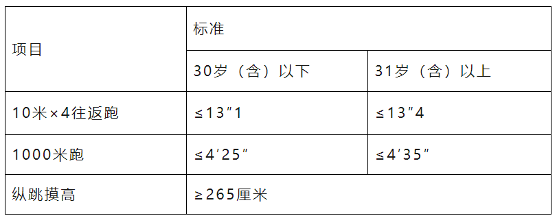 1.體能測試入圍人員:資格復(fù)審合格人員參加體能測試。