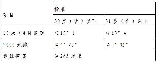 1.體能測試入圍人員:資格復(fù)審合格人員參加體能測試。