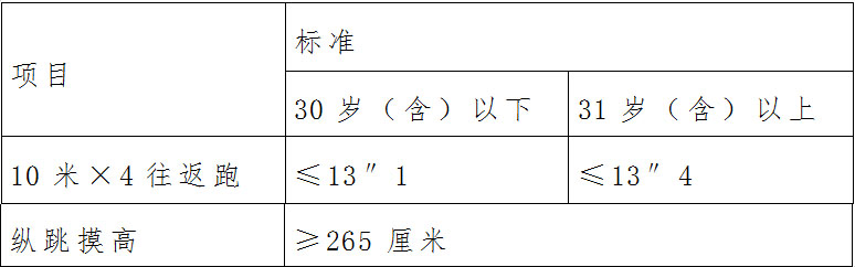 3.體能測(cè)試項(xiàng)目和標(biāo)準(zhǔn):