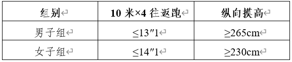 同時,資格審查合格人員參加體能測試,體能測試標(biāo)準(zhǔn)為: