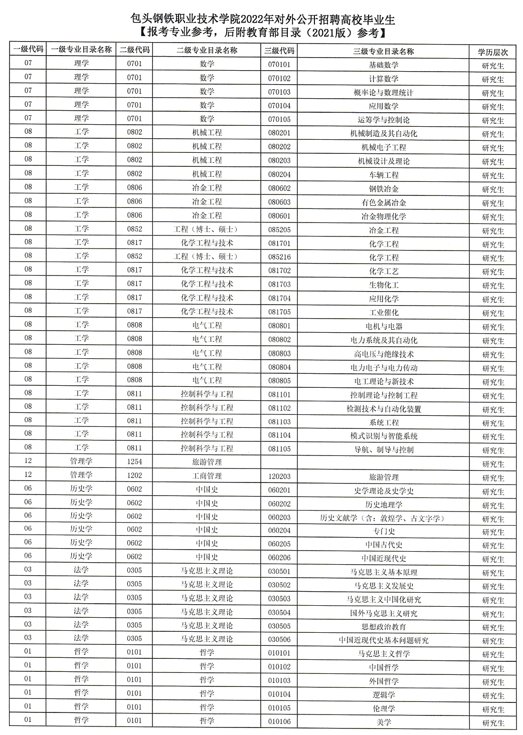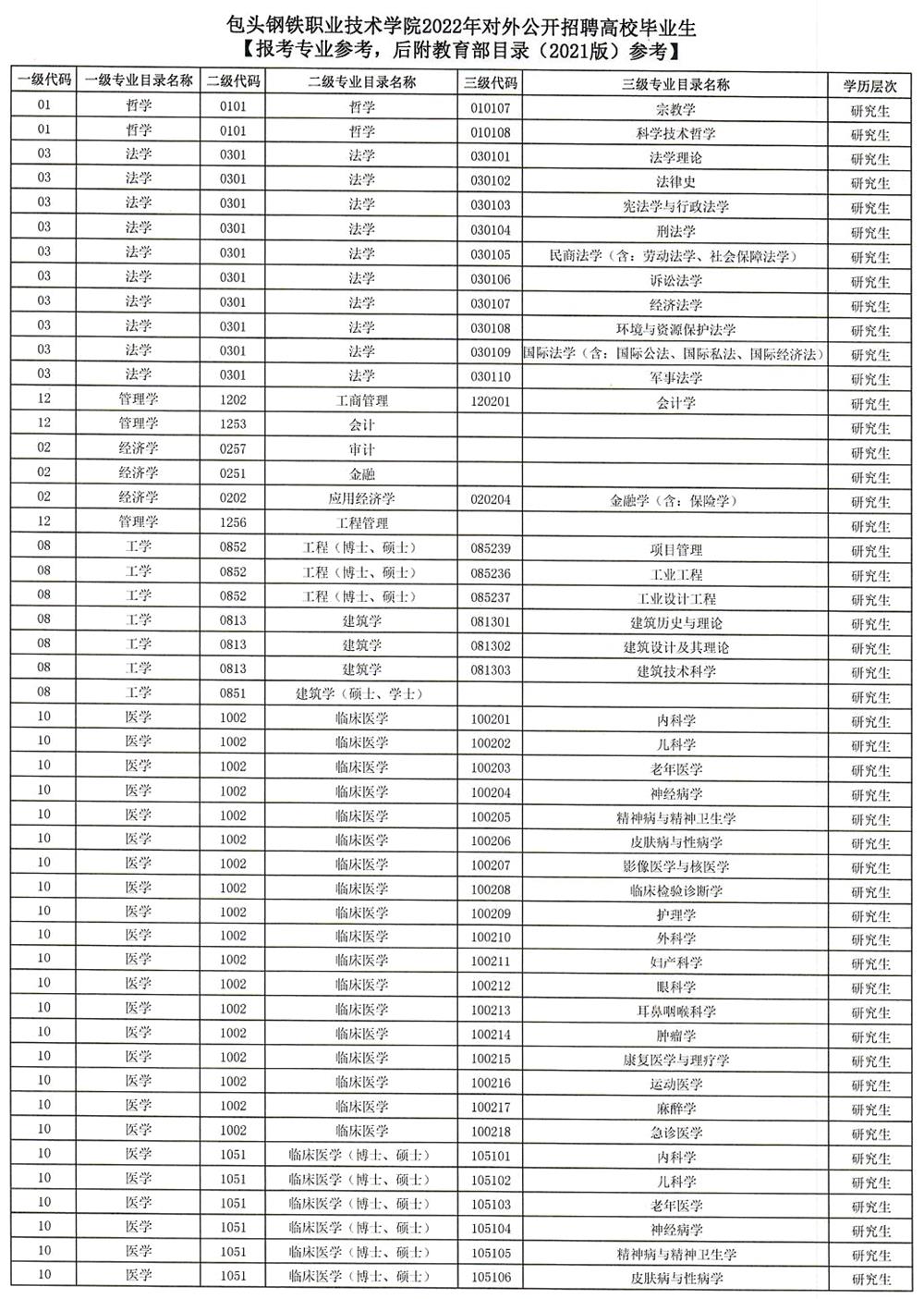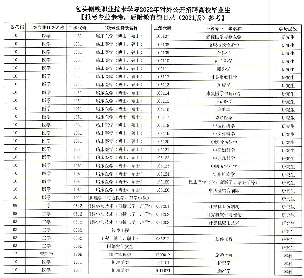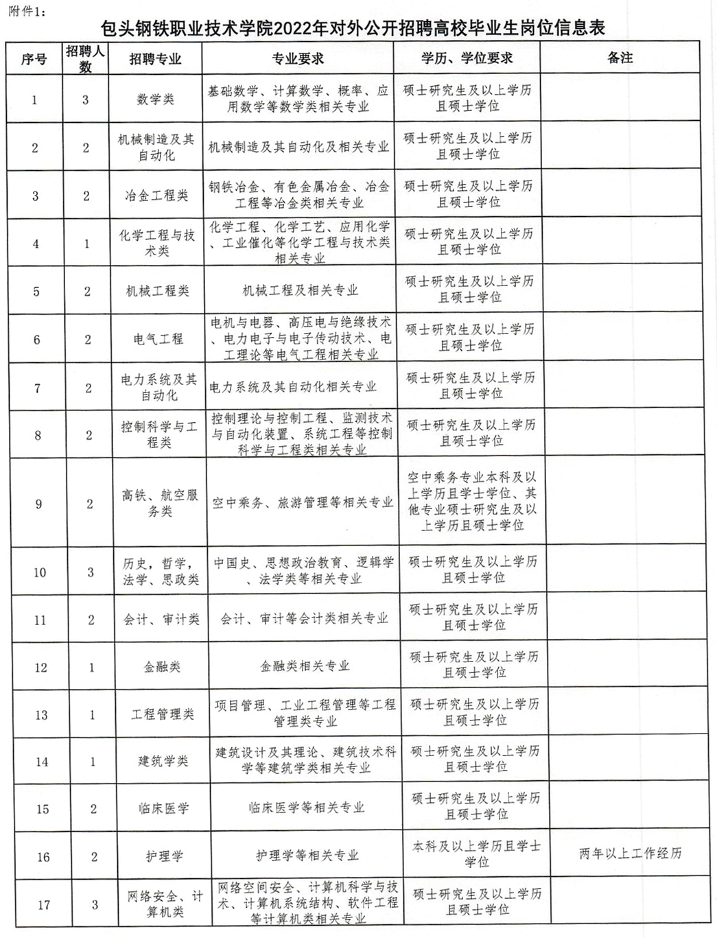 1.包頭鋼鐵職業(yè)技術(shù)學院2022年對外公開招聘高校畢業(yè)生崗位信息表