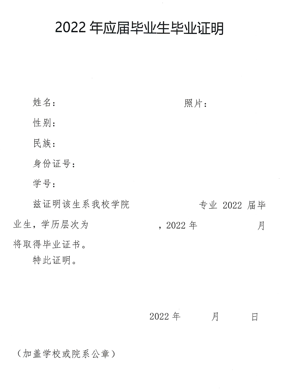 3.2022年應(yīng)屆畢業(yè)生畢業(yè)證明