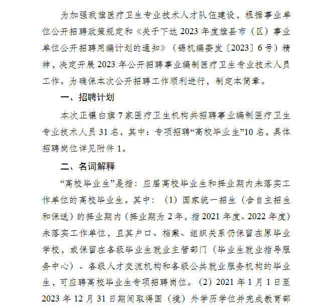 2023年錫林郭勒正鑲白旗公開(kāi)招聘事業(yè)編制醫(yī)療衛(wèi)生專(zhuān)業(yè)技術(shù)人員簡(jiǎn)章