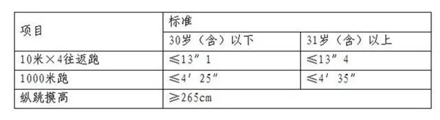 2.體能測評內(nèi)容:參照《公安機關(guān)錄用人民警察體能測評實施規(guī)則》組織實施,具體內(nèi)容為10米×4往返跑(測評次數(shù)不超過2次)、男子1000米跑(測評次數(shù)為1次)、縱跳摸高(測評次數(shù)不超過3次)。