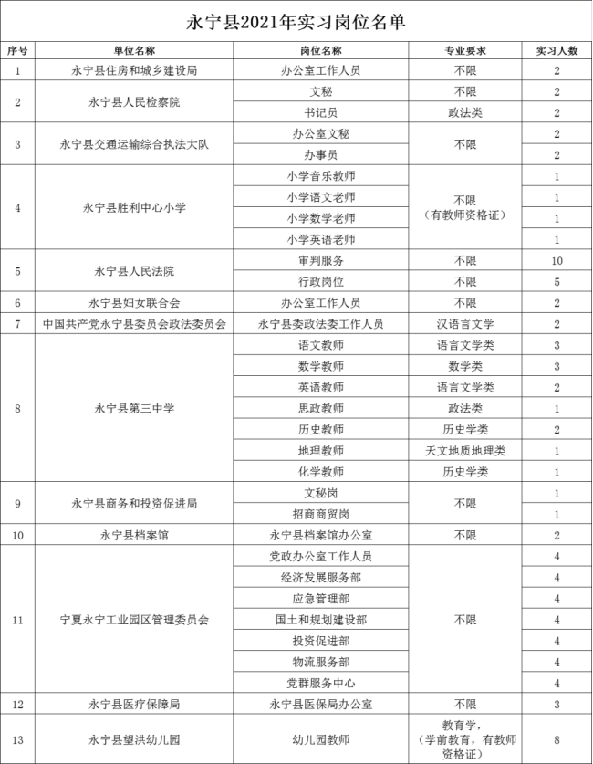 2021年銀川永寧縣高校畢業(yè)生到機(jī)關(guān)事業(yè)單位實習(xí)招募公告