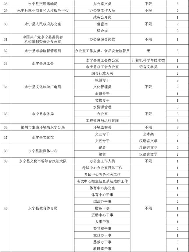 2021-08-09 22:23:18閱讀()銀川公共招聘網(wǎng)根據(jù)《自治區(qū)人力資源和社會保障廳 財政廳關(guān)于做好2021年高校畢業(yè)生到機(jī)關(guān)事業(yè)單位實習(xí)工作的通知》(寧人社函〔2021〕67號)文件精神,現(xiàn)將永寧縣高校畢業(yè)生機(jī)關(guān)事業(yè)單位招募公告予以公示。