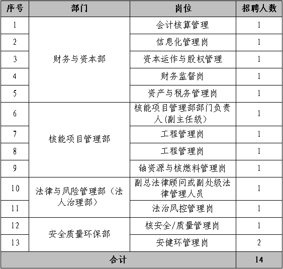 各崗位的任職資格要求詳見(jiàn)國(guó)家核電本部人員選聘崗位清單(附件1)。