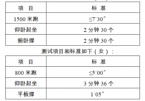 (1)體能測(cè)試時(shí)間和地點(diǎn):以準(zhǔn)考證為準(zhǔn);