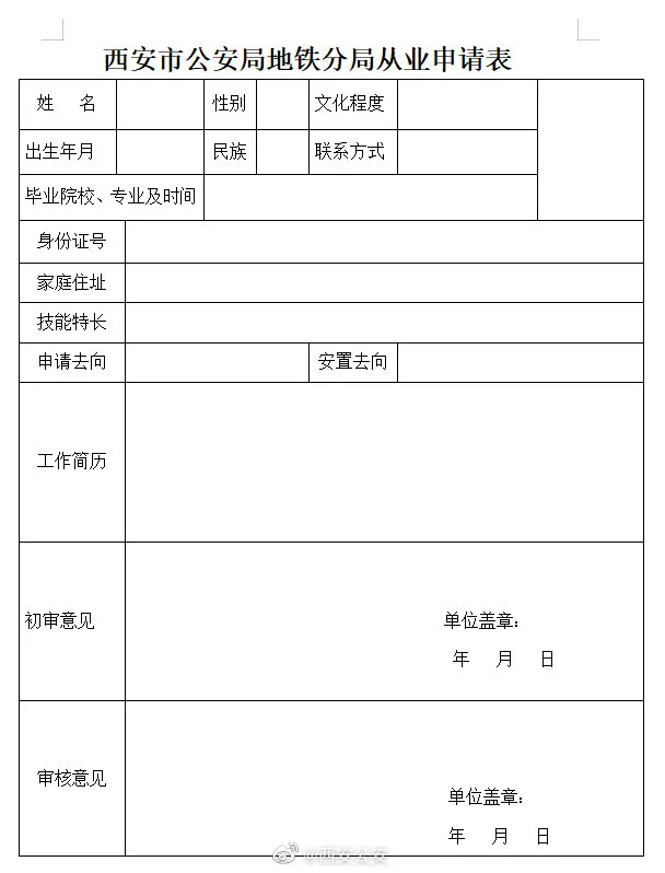 2021-11-06 00:05:16閱讀()西安公共招聘網(wǎng)因工作需要,西安市公安局地鐵分局面向社會公開招錄警務輔助人員(以下簡稱“輔警”),現(xiàn)將有關事項公告如下: