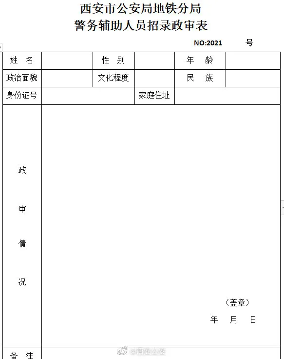 2021年西安市公安局地鐵分局面向社會公開招聘警務輔助人員公告