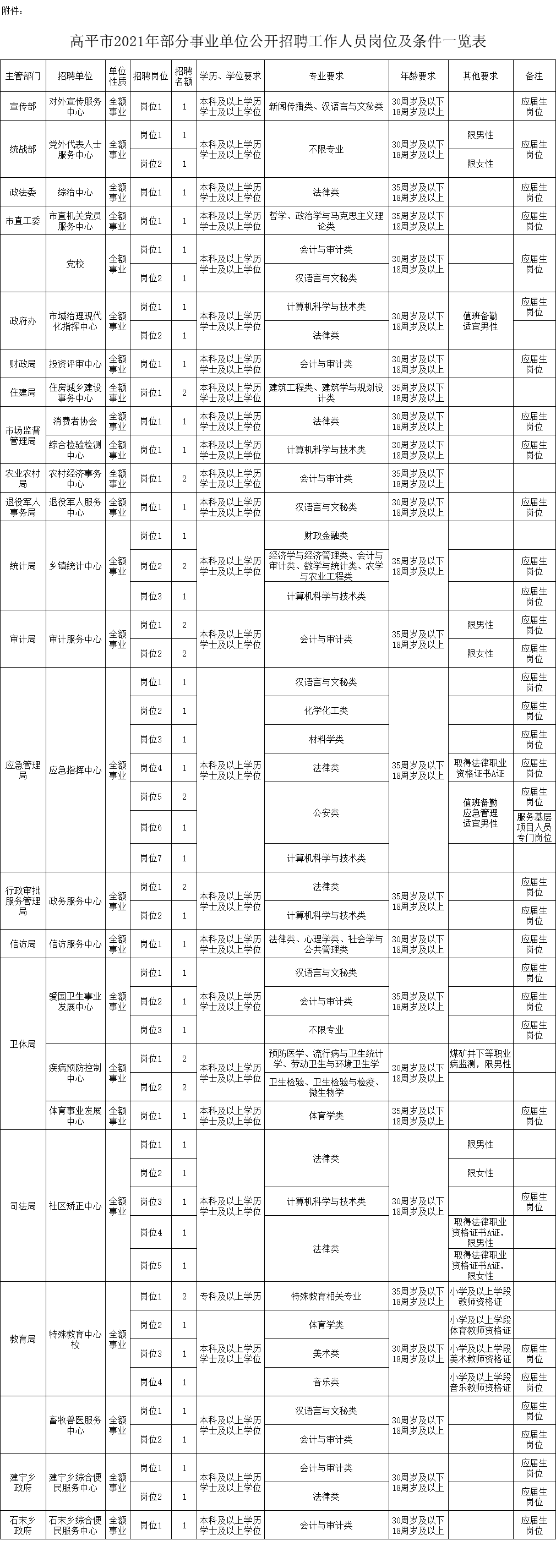 附件: 《高平市2021年部分事業(yè)單位公開招聘工作人員崗位及條件一覽表》