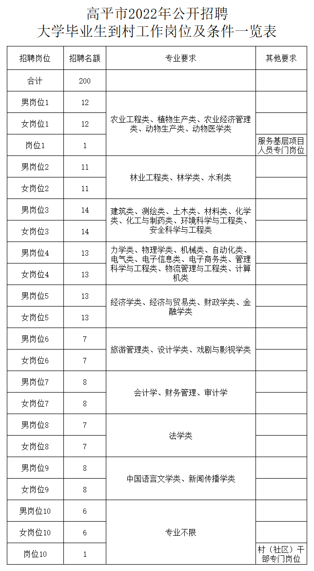 附件:高平市2022年公開招聘大學(xué)畢業(yè)生到村工作崗位及條件一覽表