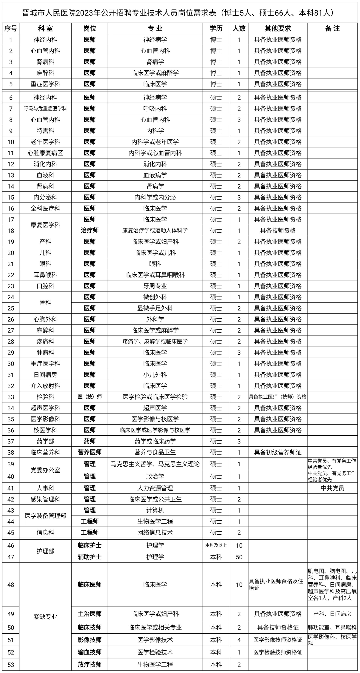 2023年晉城市人民醫(yī)院公開招聘專業(yè)技術(shù)人員公告
