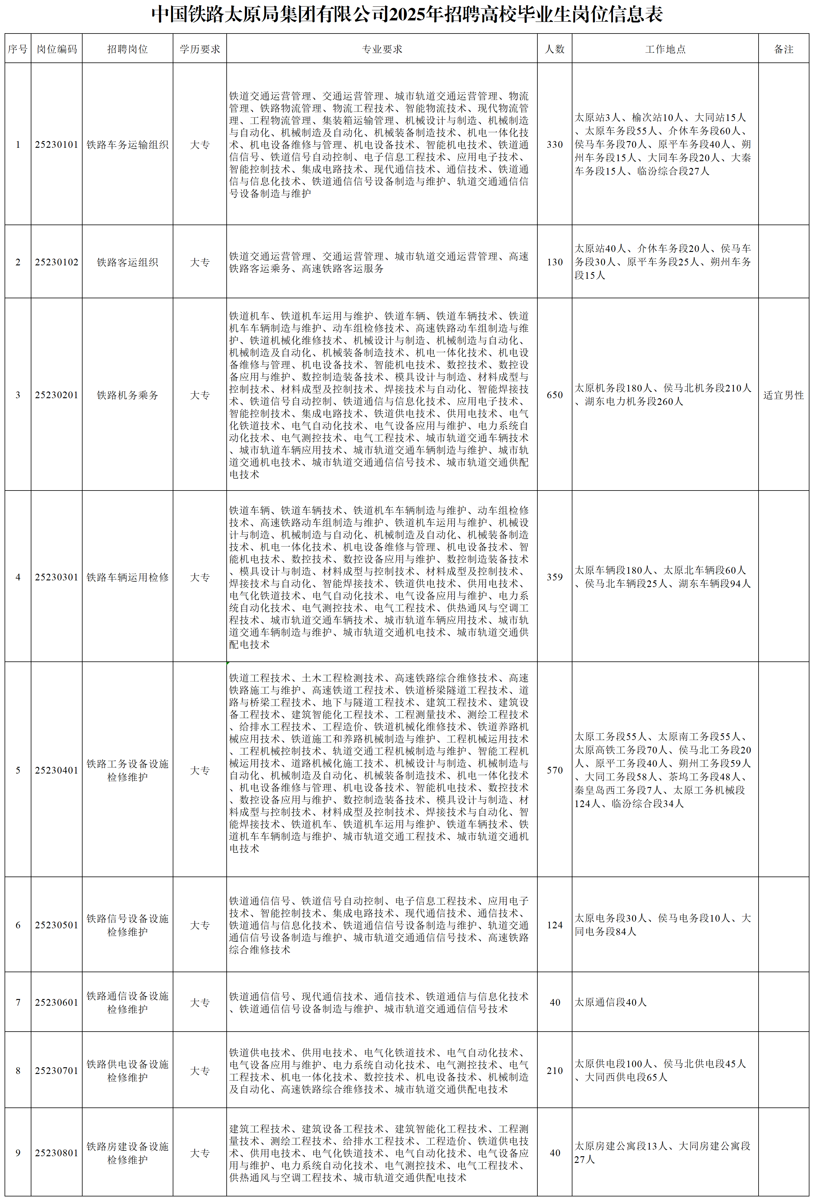2025年中國(guó)鐵路太原局集團(tuán)有限公司招聘高校畢業(yè)生公告(二)