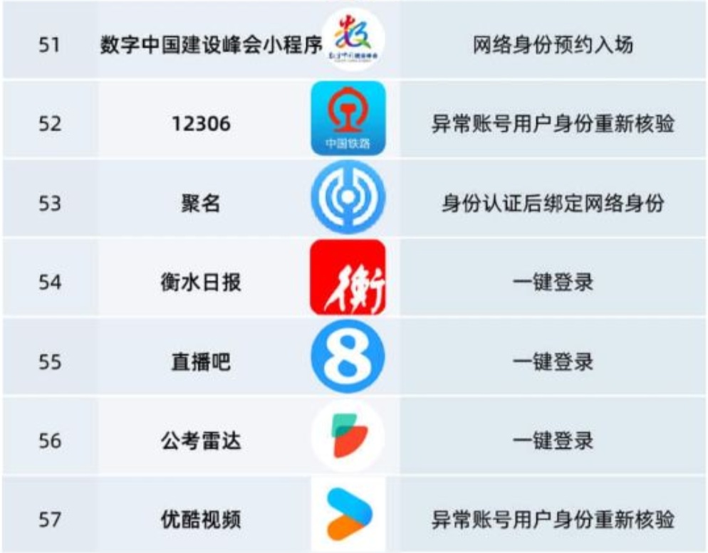目前,國家網(wǎng)絡(luò)身份認證公共服務(wù)正處于試點階段,已上線試點App和場景共67個,包括部分政務(wù)App和互聯(lián)網(wǎng)App,如國家政務(wù)服務(wù)平臺、中國鐵路12306、淘寶、微信、小紅書、QQ等,附官方支持名單如下: